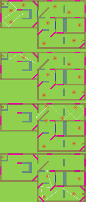 When it came to our new teleportal mechanics, the goal of designing levels one shot completable helped me anchored my design to include many backtracking bouncing, with careful adjustments with the tile positions and angles, which are demonstrated to providing a lot of fun to the players during our open beta playtest.