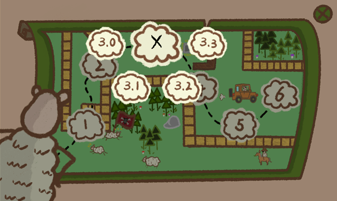 As the only designer in the team, all levels fell upon my shoulder. Having a completely empty stage to start with, I needed to figure out the game flow with intended mechanics on myself. At the beginning, my thought was limited by the example games from previous cohorts that only have six or so complicated levels and decided to do the same format of level layout by providing limited number of shots for players to shoot the sheep ball strategically.