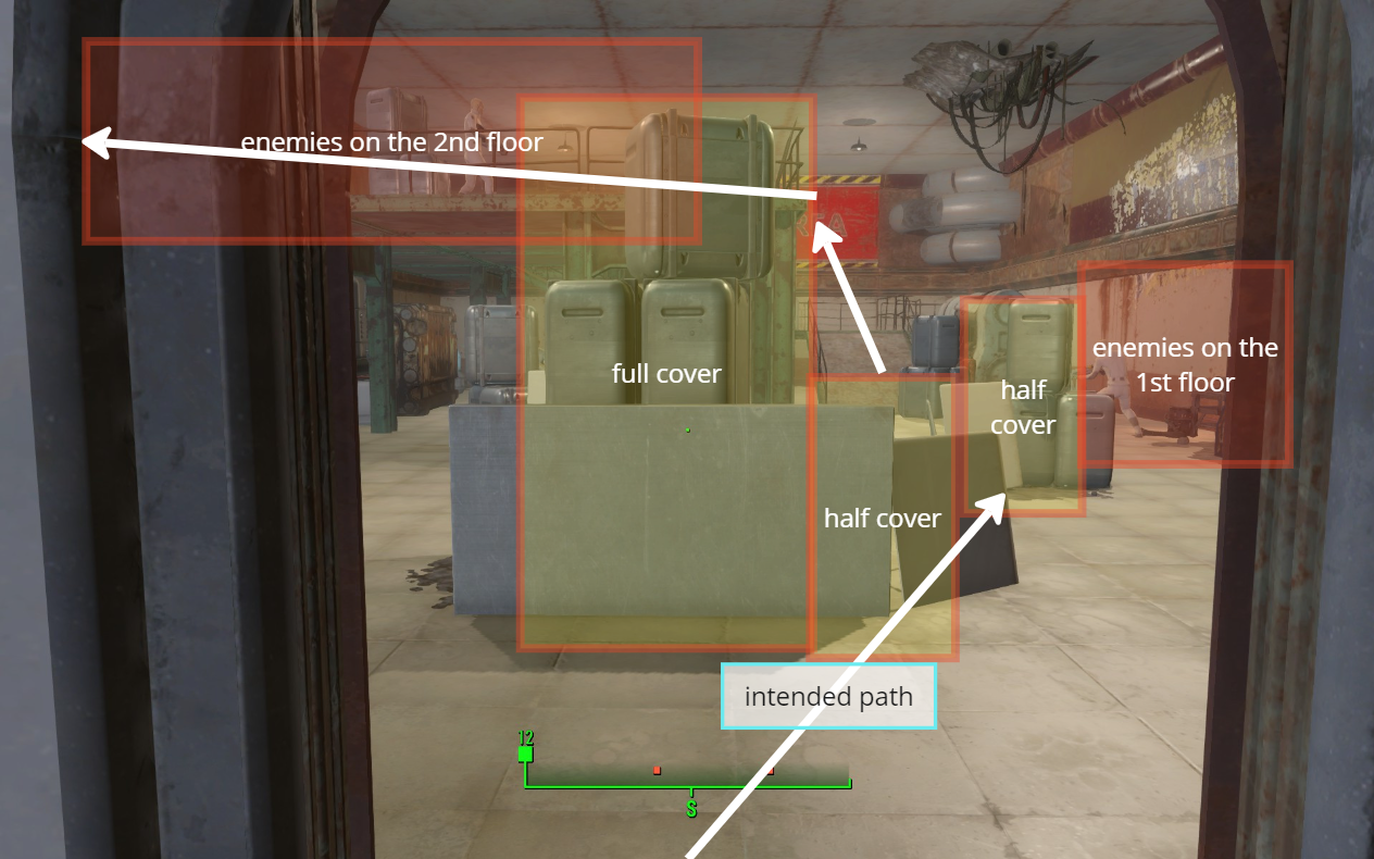 Melee and ranged enemies are strategically placed in groups to enhance gameplay dynamics. Most enemies are assigned preferred covers and idle markers, ensuring they occupy positions that promote a general flow toward the player’s objectives.