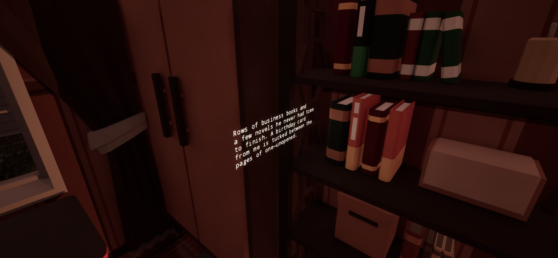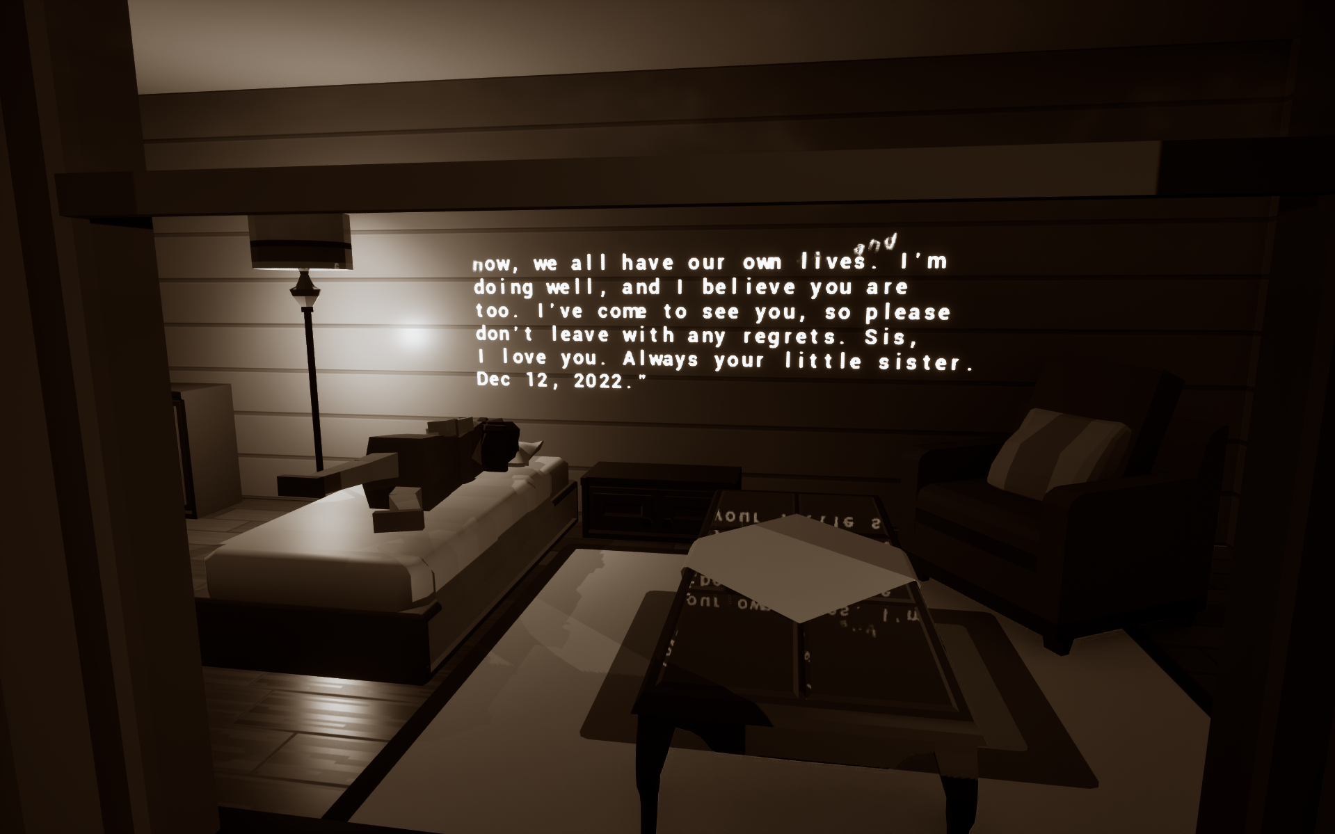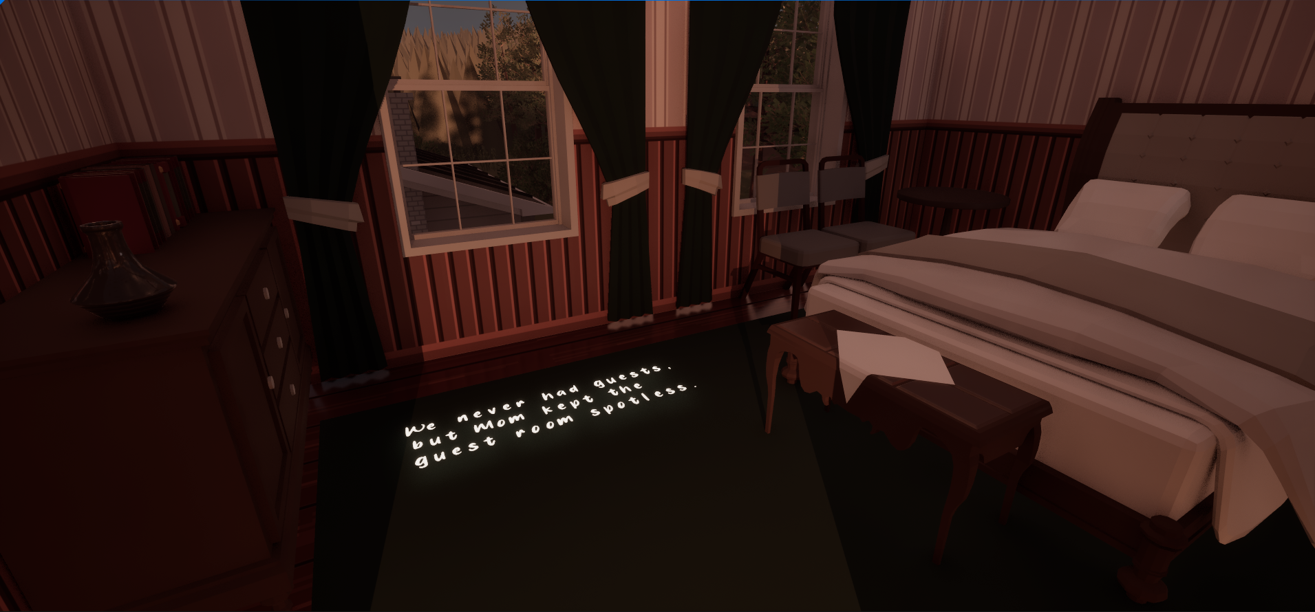Through this process, I’ve come to better understand the kind of stories I want to tell. I’m more drawn to the subtle emotional dynamics—the tension in silence, the way a small gesture can speak volumes, or the resonance that lingers in a forgotten object. I want to craft experiences that feel personal, reflective, and emotionally grounded, without overwhelming the player.