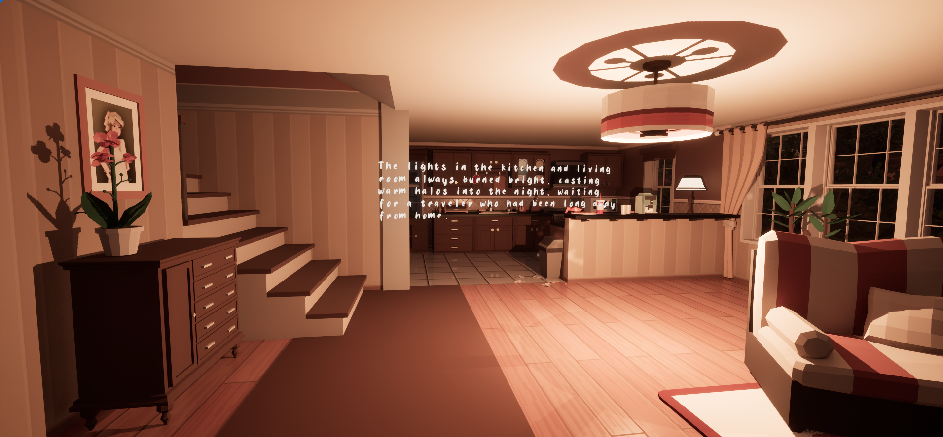 Instead of relying on lengthy cutscenes, much of the contextual narrative unfolds through environmental storytelling. Players can examine everyday objects and listen to the protagonist’s inner thoughts as she reflects on her family’s history. I placed multiple interactive items along and around the critical path to give players opportunities to engage with the world and uncover more background as they explore.