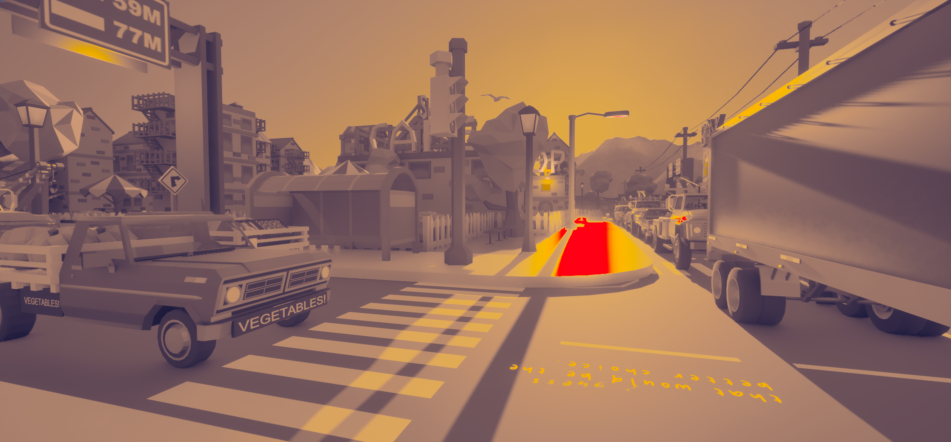 In the town sequence, layers of traffic noise and car horns appear before and after the girl’s walk. These sounds especially stand out when the player approaches a crosswalk—the honk is intentionally placed to snap her out of her thoughts and remind her to pay attention to her surroundings.